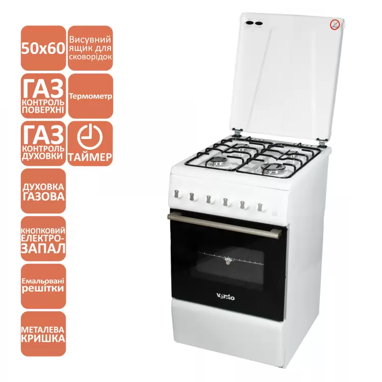 Основні параметри газової плити GG 5060 ES (WH) T від Вентолюкс: