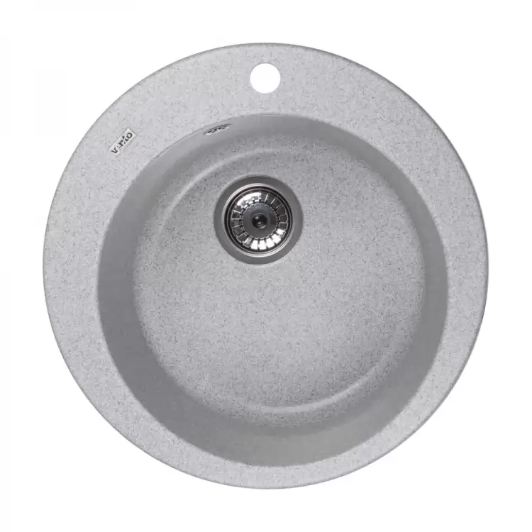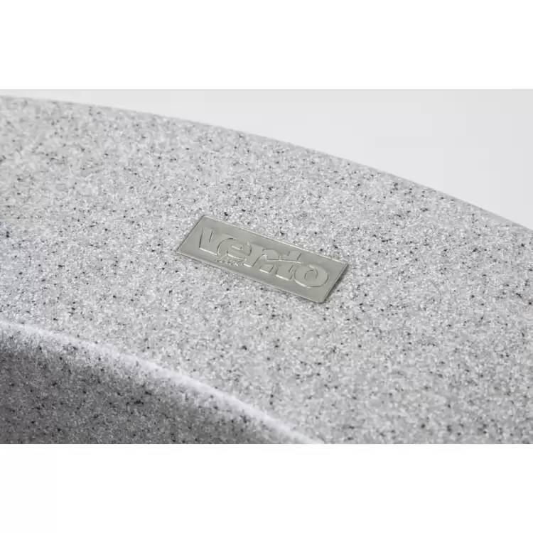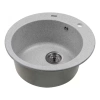 Мийка кам'яна FABIA (GRAY GRANIT) 500x200 в модному гранітовому (сірому) кольорі з традиційною для цього сегмента формою - круглою. Мийка не тільки сірого кольору, але також має помітні темні вкраплення у вигляді невеликих точок, які додають її дизайну завершеності.
