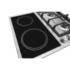 Газово-електрична поверхня не тільки ефективна за рахунок наявності вибору на чому готувати, але і має вельми привабливий дизайн. Чорне скло, яке гармонічно доповнене нержавіючою сталлю, відмінно підходить під різні варіації кухонних інтер'єрів, при цьому ще більшої родзинки техніці надають зони нагріву, помічені колами.