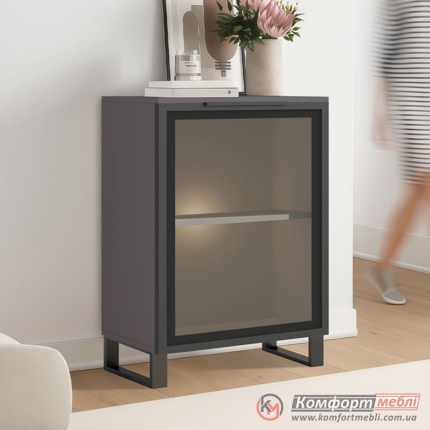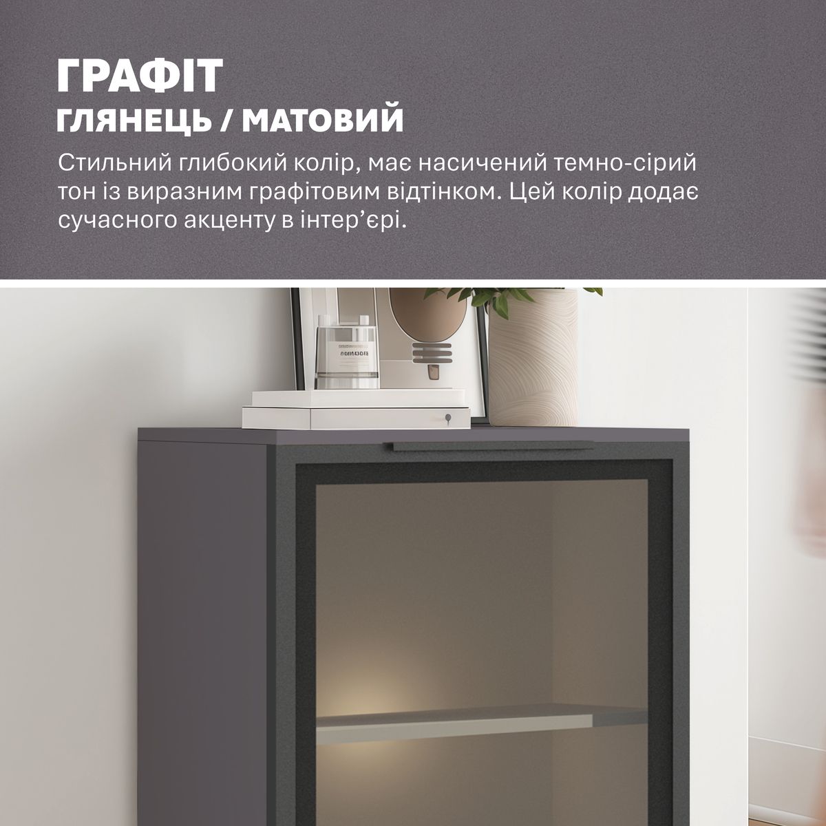 Тумба з вітриною Flex завширшки 60 см стане ідеальним доповненням вашої вітальні. Виготовлена з якісних матеріалів, вона оснащена скляними дверцятами, через які ви зможете елегантно демонструвати свої найцінніші речі, книги або декоративні предмети. Графітовий відтінок надає їй сучасного вигляду, а компактні розміри дозволяють розмістити тумбу навіть у малогабаритних кімнатах. Вдоскональте свій інтер’єр з цією стильніше та функціональнішою меблевою одиницею! Можна придбати з доставкою у Києві, Україні.
