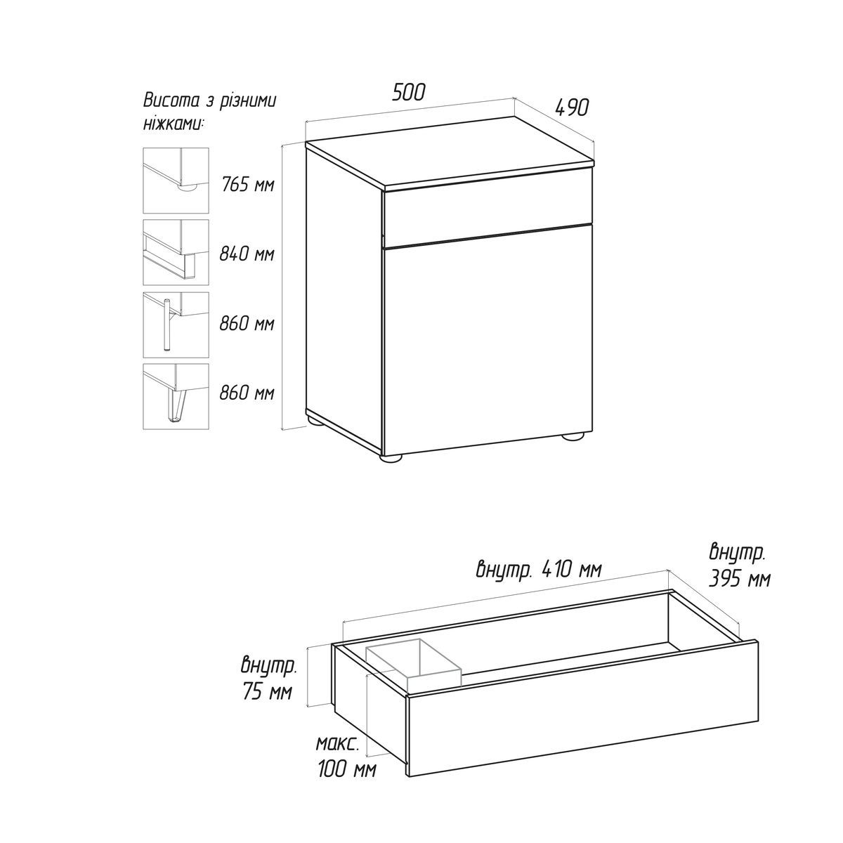 Висота -860 мм