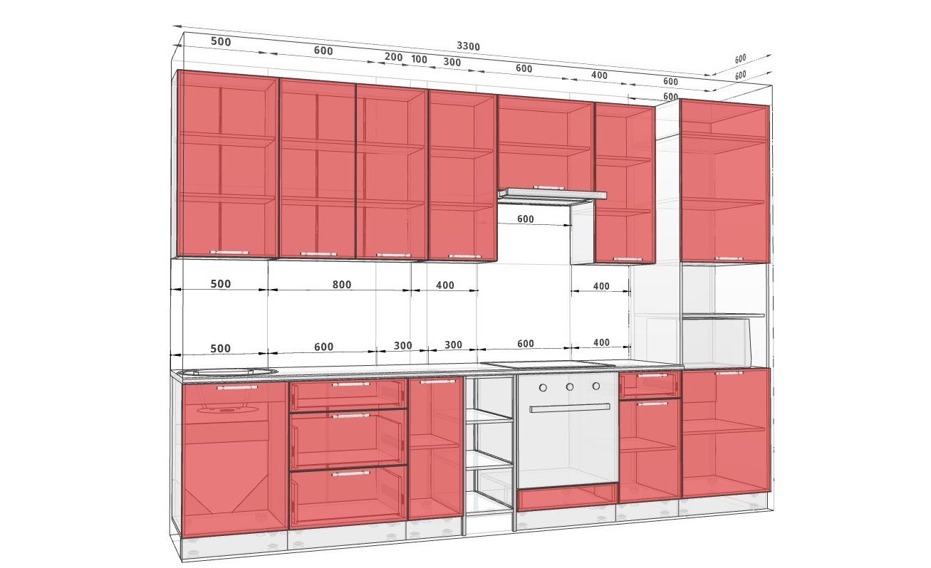 Кухню можна виготовити нестандартної ширини з інтервалом 1 см. під ваш розмір