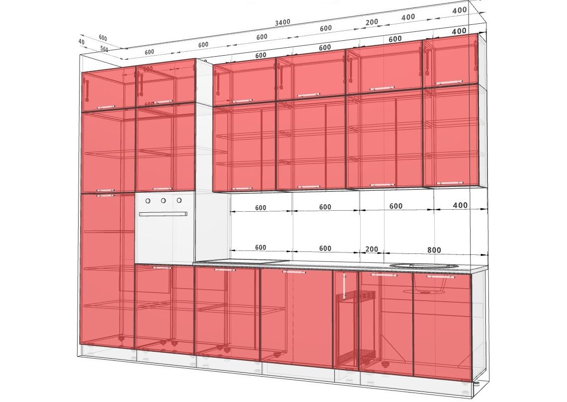Кухню можна виготовити нестандартної ширини з інтервалом 1 см. під ваш розмір