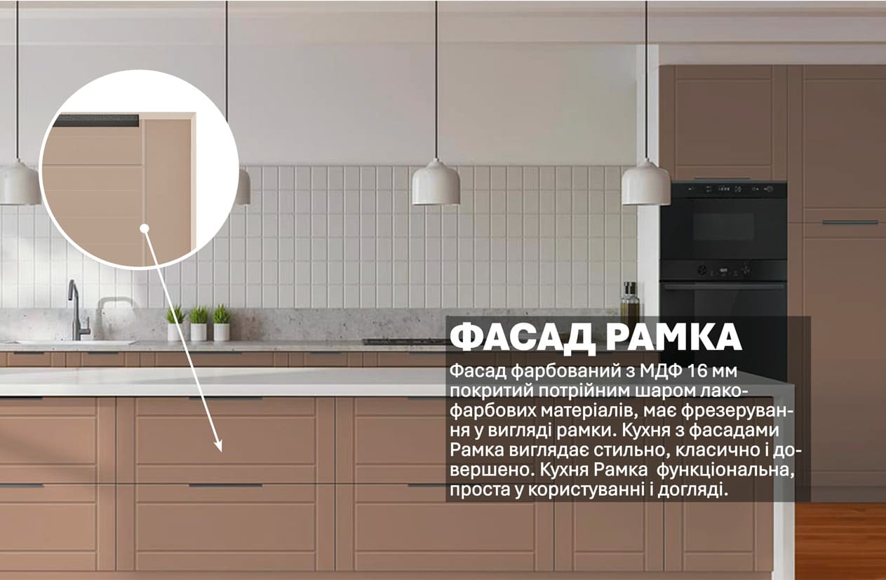 Матеріал фасаду - фарбований МДФ 16 мм, покритий потрійним шаром лако-фарбових матеріалів.