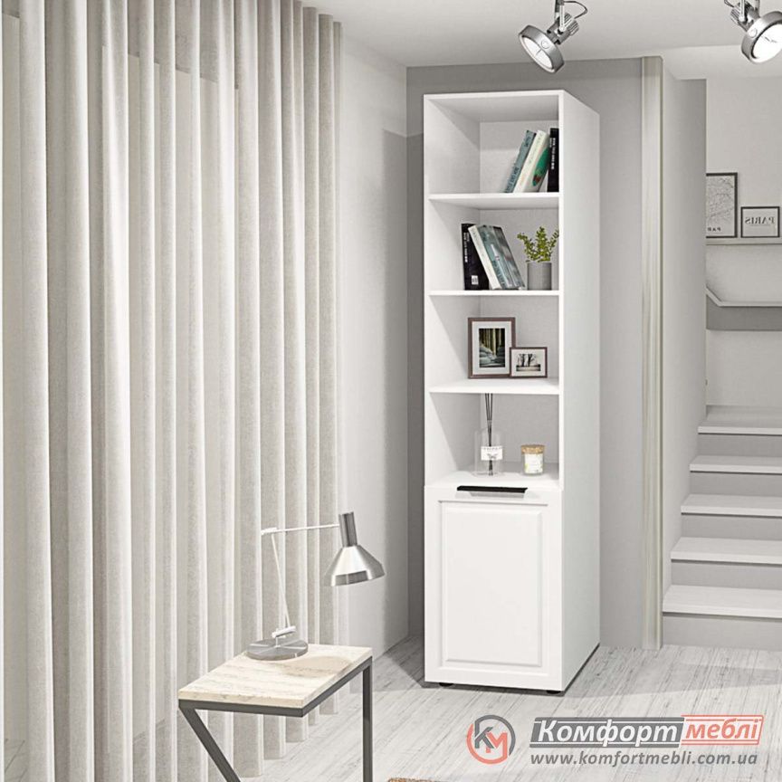 Стелаж Flex шириною 40 см виготовлений з МДФ з білим фасадом стане стильним доповненням вашої гостинної. Він не тільки допоможе організувати простір, а й створить елегантний вигляд у кімнаті. Завдяки універсальному дизайну стелаж ідеально підходить для книг, декору, рамок з фото та інших речей, що ви хочете продемонструвати. Основна перевага – це здатність чудово вписуватися у будь-який інтер’єр, підкреслюючи вашу індивідуальність та смак!