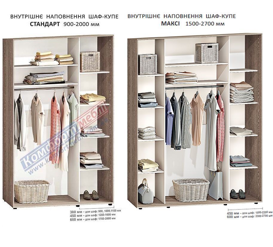 Вартість шафи по розмірам