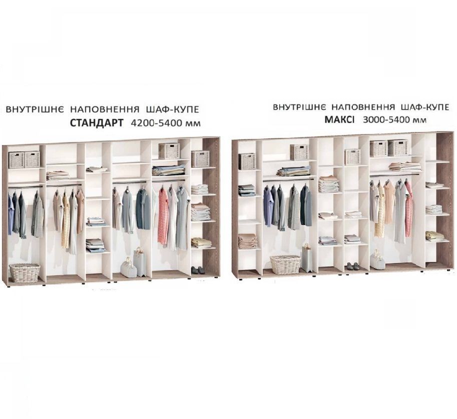Глибина 600 мм: • Висота 2100 мм - 39634 грн. • Висота 2200 мм - 40469 грн. • Висота 2400 мм - 41720 грн. Ціна за колір профілю (+ за один фасад): • Білий, Золото, Шампань, Чорний + 223 грн. • Баварія білий + 747 грн. • Баварія графіт + 1494 грн. |
