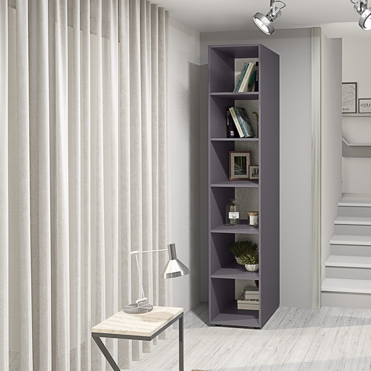 The 40 cm wide Flex shelving unit is the perfect solution for your hallway! Its stylish graphite design blends seamlessly into any interior and allows for optimal use of space. This functional shelving unit is perfect for storing shoes, accessories, or books, ensuring order and comfort. Its main advantage is its compact size, allowing it to fit even in the smallest hallway without sacrificing comfort or aesthetics.