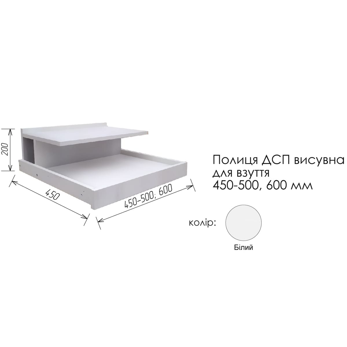 Полиця ДСП висувна для взуття 450-500, 600 мм.